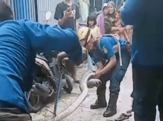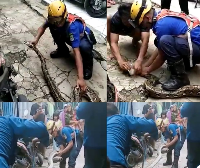 “Alhamdulillah petugas Damkar datang dan langsung mengamankan ular piton itu, penghuni kontrakan juga alhamdulillah tidak kenapa-napa”, katanya.