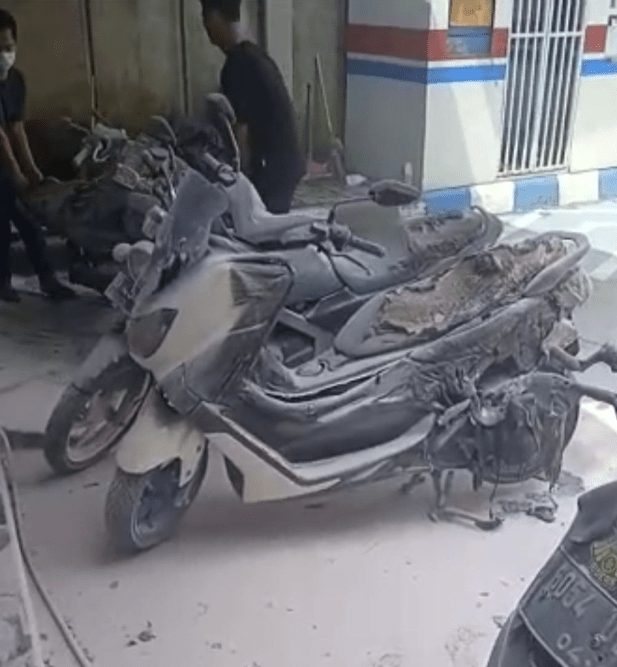 Pada akhir video diperlihatkan setidaknya beberapa unit motor ludes terbakar oleh api yang berhasil dipadamkan. Motor tersebut juga tampak hangus dan berubah warna menjadi abu-abu dan hitam akibat kebakaran tersebut.***